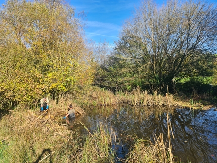 The brash and logs generated from the clearance will be used to create a hibernaculum—a man-made structure consisting of logs, rocks, and pipes, placed in a deep hole and covered with earth. These are great places for amphibians and reptiles to winter, as they hold the day's heat and slowly release it as it gets colder.