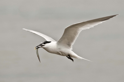 Found around our coasts during the breeding season, the large Sandwich tern can be spotted diving into the sea for fish such as sandeels. It nests in colonies on sand and shingle beaches, and islands.